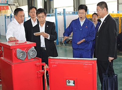 棗礦集團董事長、黨委書記劉成錄(左三),總經(jīng)理、黨委副書記滿慎剛(左四),副總經(jīng)理殷濤(左一),新遠(yuǎn)大公司董事長(左二),黨委書記王培剛(后右)到公司親切指導(dǎo)。公司經(jīng)理羅賢峰(右二)陪同指導(dǎo)。