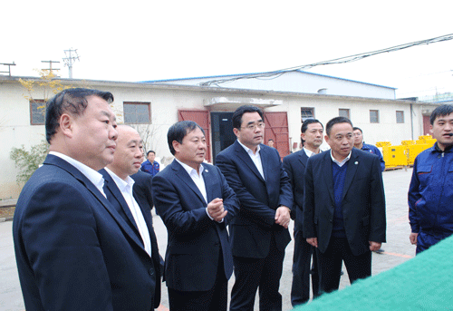棗礦集團董事長、黨委書記劉成錄(左三),總經(jīng)理、黨委副書記滿慎剛(左四),副總經(jīng)理殷濤(左一),新遠大公司董事長(左二),黨委書記王培剛(后右)到公司親切指導。公司經(jīng)理羅賢峰(右二)陪同指導。