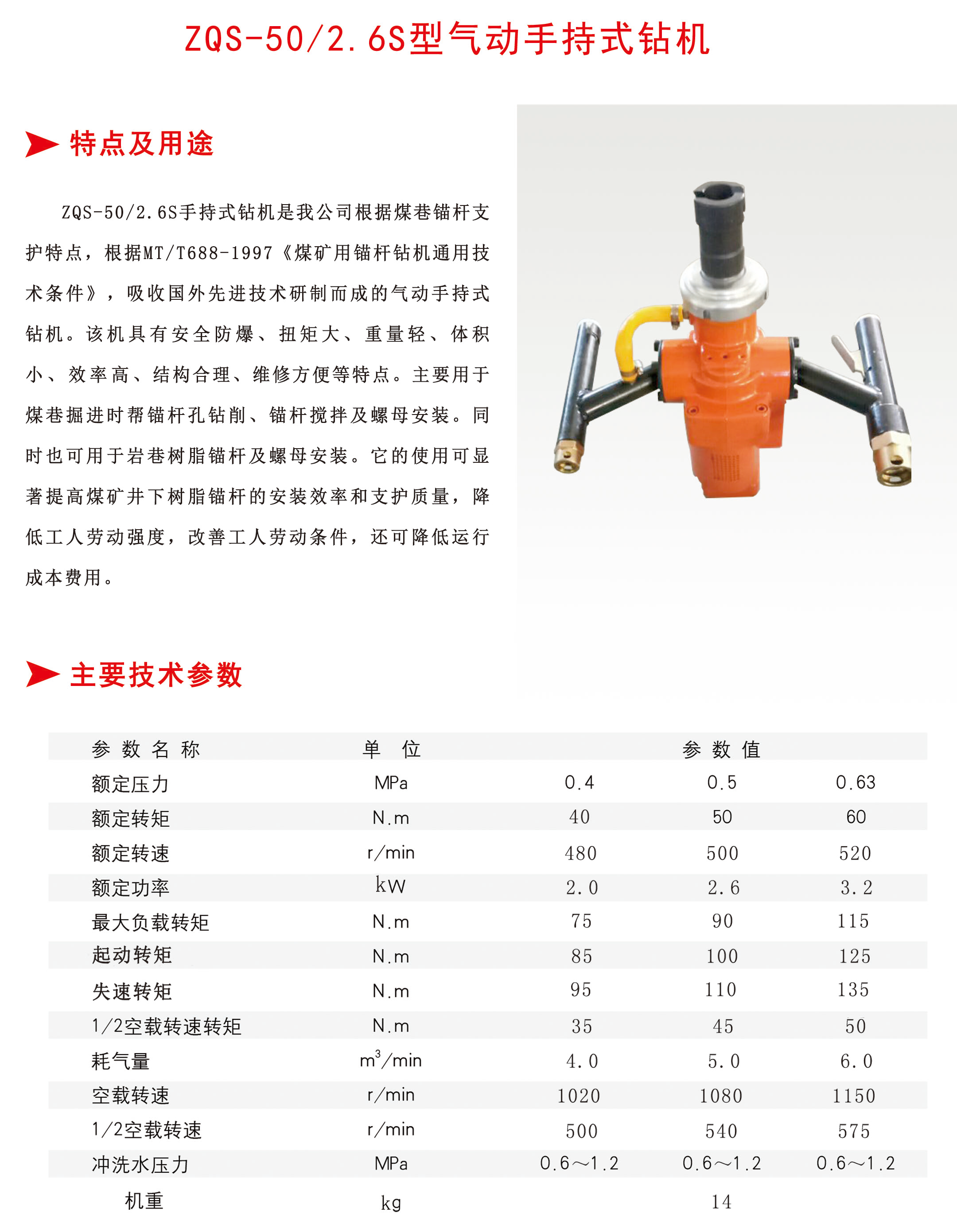 ZQS-50/2.6S型氣動(dòng)手持式鉆機(jī)